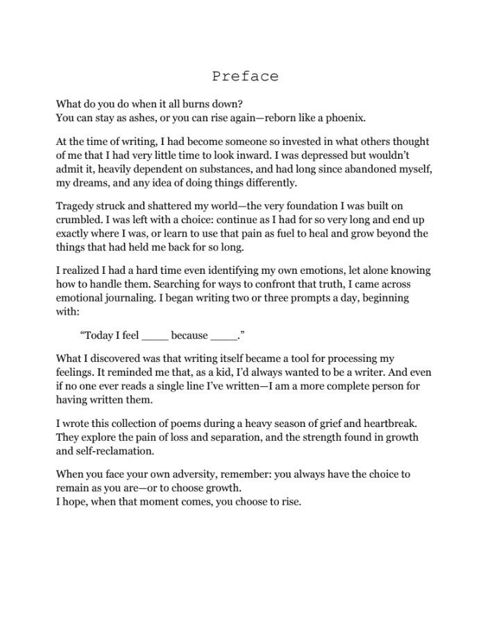 In the Ashes of Rebirth is a collection of poems born from grief, reflection, and transformation.